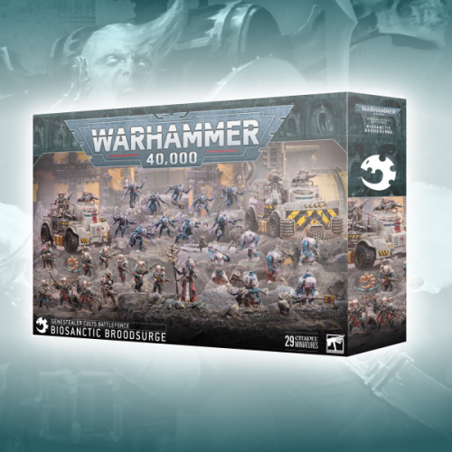 This xenos-empowered box contains a terrifying Genestealer Cults force, led by an enigmatic Benefictus. This zealous leader is surrounded by determined and rebellious soldiers such as Neophyte Hybrids, and the twisted bulk of crude-weapon wielding Aberrants. Added to this is the formidable armour, firepower, and troop-carrying potential of both a Goliath Rockgrinder and a Goliath Truck, whilst a unit of terrifying purestrain Genestealers bursts forth ready to shred all foes limb from limb.
