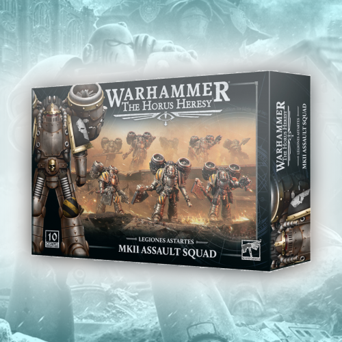 This multipart plastic kit builds 10 Assault Space Marines, powerful shock troops for your Legiones Astartes armies in games of Warhammer: The Horus Heresy. With their speed and chainaxes, they are ideal for attacking exposed flanks and bypassing the enemy front lines, throwing a deadly spanner into their plans.