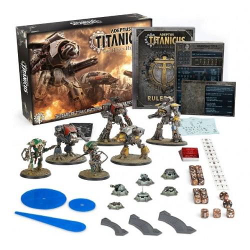 – 1x 96-page softcover Adeptus Titanicus rulebook. This contains the full rules for the game, and will teach you the basics as well as introducing you to advanced rules and tactics, and three different ways to play.