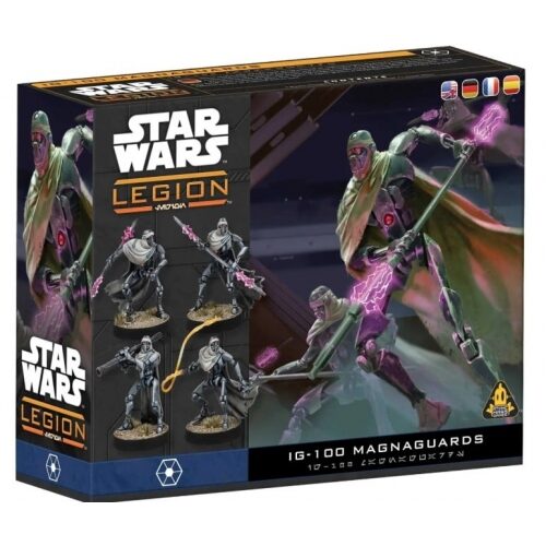 This Unit Expansion for Star Wars Legion includes six unit miniatures, IG-100 Magnaguards, usable by Separatist Alliance armies.