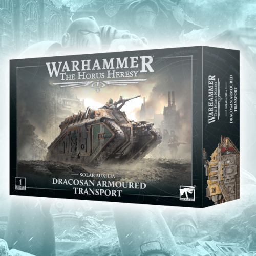 The Dracosan Armoured Transport is a heavily armed personnel carrier, manufactured to the highest standards and configured with systems that allow the Solar Auxilia to traverse the most hazardous battlezones. The Dracosan is large enough to accommodate a full strength section of 20 Solar Auxilia infantry, protecting them from all but the most intense enemy fire while using its own weaponry to pound enemy positions to dust.