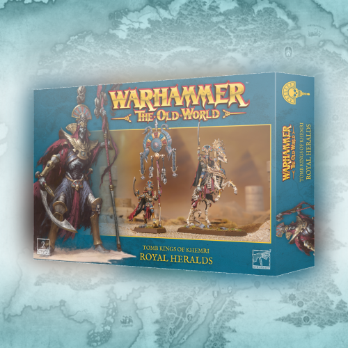 This multipart plastic kit builds two Royal Heralds – one on foot and one mounted on a barded skeletal steed – potent champions for your Tomb Kings of Khemri armies in games of Warhammer: The Old World. Both miniatures can be used to represent a Royal Herald, Tomb Prince, or Tomb King. These macabre miniatures are ideal for bolstering your army and are powerful warriors in their own right.