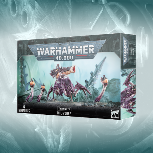 This multipart plastic kit builds a Biovore – a sentient Tyranid mortar – as well as three floating Spore Mines. The Biovore's lumbering form supports a symbiotic dorsal launcher, its spore-sac bulging with biological explosives waiting to be fired. The Spore Mines can be launched onto the battlefield by the Biovore, or simply rain down from the skies. The kit offers several alternate leg poses and basing elements for the Biovore, as well as three distinct designs of Spore Mine, allowing you to maintain variety in your brood as you build a whole battery of artillery-beasts.