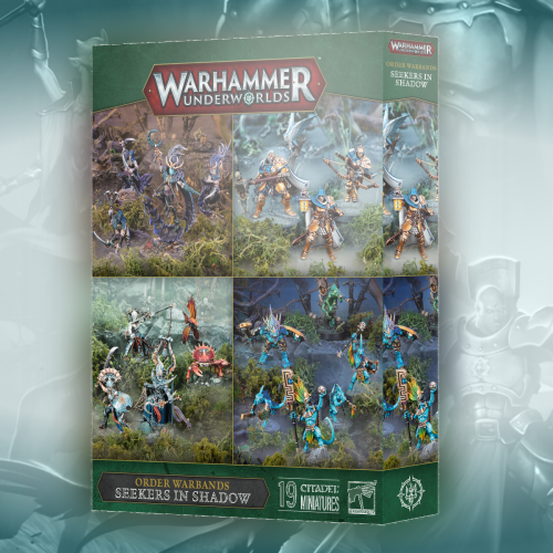 This kit collects four Order-themed warbands for Warhammer Underworlds. All the miniatures are push-fit, moulded in coloured plastic, and include scenic bases on the frames so you can start playing quickly. You'll also find warscroll cards and fighter cards for each warband. The Shadeborn are an aggressive Strike warband, Xandire's Truthseekers are a versatile Flex warband, The Starblood Stalkers are a tough Take and Hold warband, and Elathain's Soulraid features the Mastery playstyle, which rewards players for careful management.