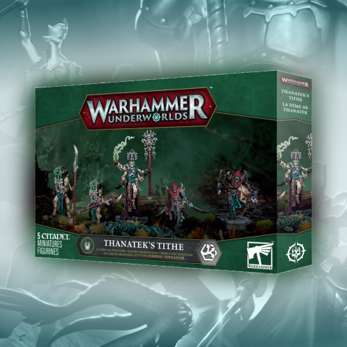 This multipart plastic kit builds Thanatek's Tithe – a complete warband for use in games of Warhammer Underworlds. It comes with fighter cards and warscroll cards for the warband.
